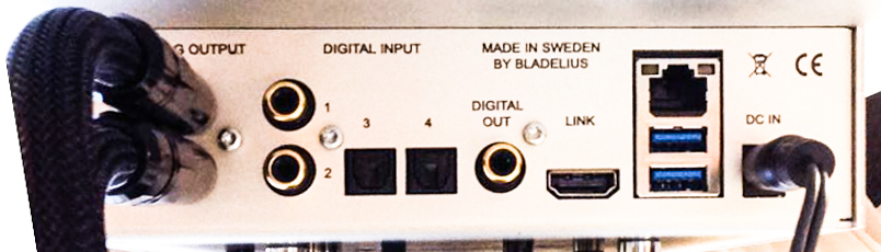 As preamplifier Bladelius Mimer has only one analog input, and it is in the format minijack. This may initially seem as a little strange limitation, but it must be seen in context. Device compact format does not allow unlimited inputs and outputs, and here it is the digital connections that are prioritized. But it is also an important part of this that Bladelius develops an additional box that will have far more inputs, and which in addition are fully balanced. The connection this will happen with a special connector that I initially took for an HDMI connection, but as I became aware of is actually a fully balanced analog and digital link. This option makes sense - in addition to that it addresses the practical challenges to accommodate connections to the limited surface in the bottom of the cabinet, giving it a far more elegant solution for those who choose to hang a Mimer on the wall.