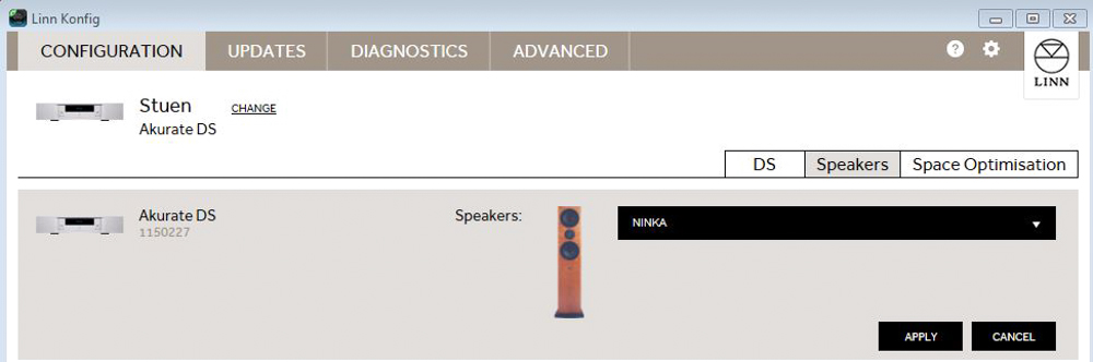 SPACE Optimation is installed and test run on my Akurate DS. The installation itself is intuitive and painless, and behaves more or less like any other upgrades that has been through during all those years when Akurate DS has been in my possession. An initial update of the configuration program Linn Konfig followed by firmware update of Akurate DS, managed in the same Linn Config.