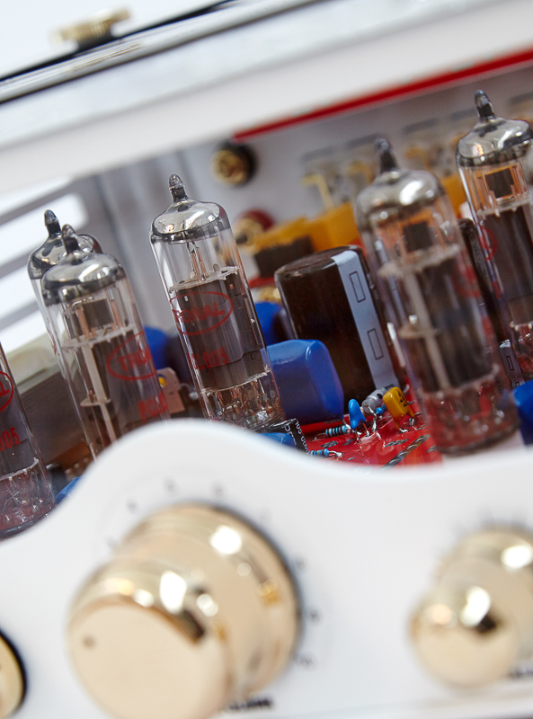 On the front we find an impedance-selector that goes in steps from 8-128 Ohms. There is also a separate mode selector. This Headphone Amplifier is produced both in the traditional black finish, and a new ivory finish.
