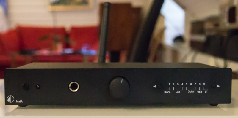 Ikke Pro-Ject MaiA, nei! For i tillegg til en basic integrert forsterker har de funnet plass til et RIAA-trinn, en Bluetooth-enhet som er kompatibel med aptX, en 24bit/192kHz DAC og en asynkron USB-inngang! Og apropos innganger – her finner vi hele 9 stk., mer enn det de aller fleste fullstørrelse forsterkere kan by på.