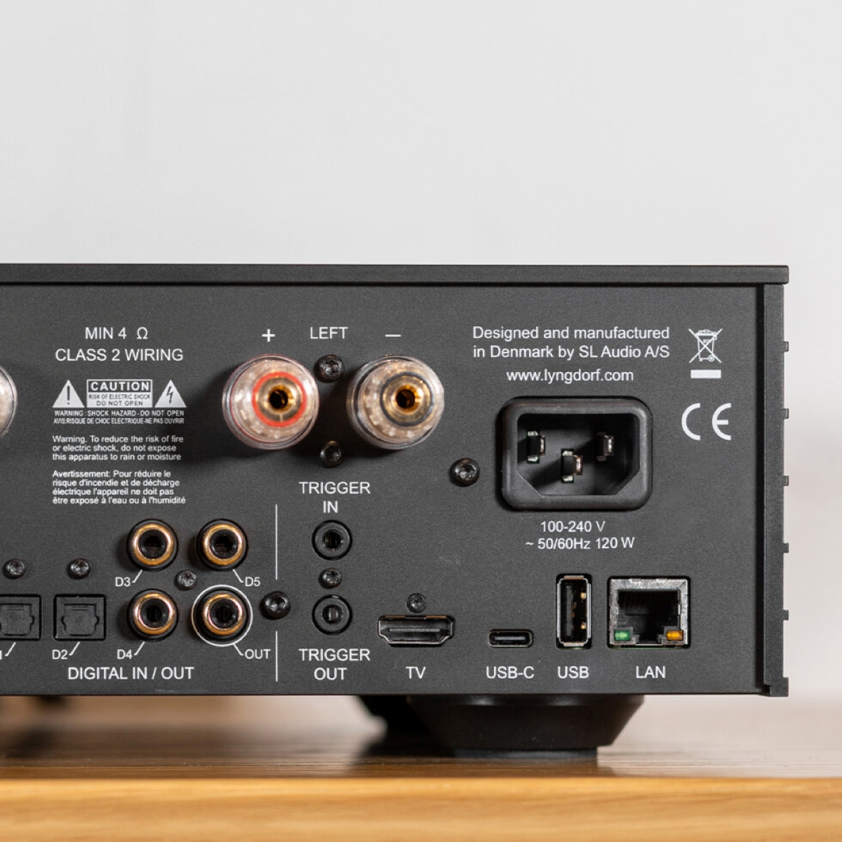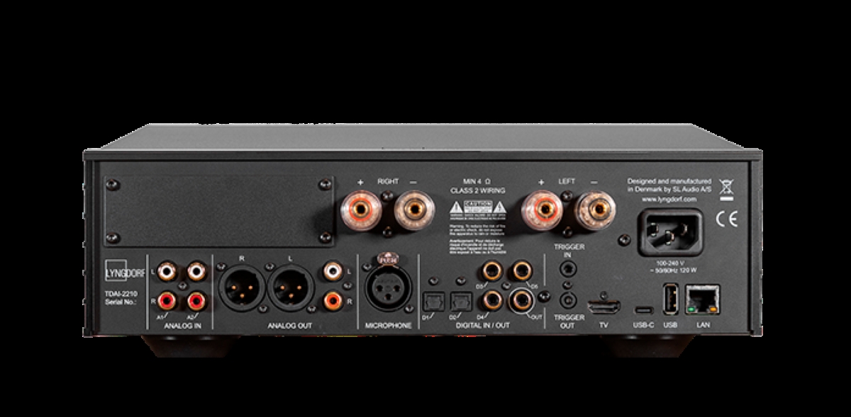 Det er mulig å konfigurere en av de analoge inngangene med HT-bypass. Lyngdorf TDAI 2210 får dermed innpass i vår oversikt over stereoforsterkere med HT Bypass.