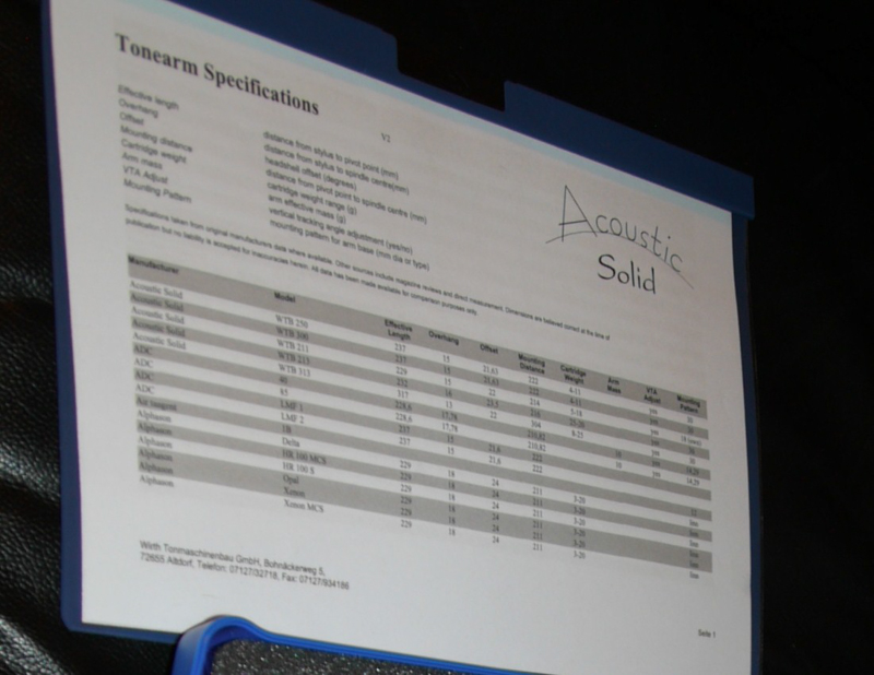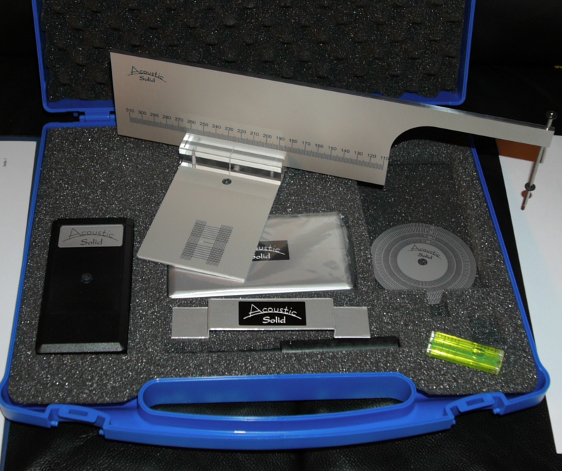 Protractor, elektronisk vekt som man kan høydejustere slik at man kan få lagt pickupen nedpå vekten i korrekt høyde (noe som er veldig viktig), 50 Hz stroboskop lampe med sjablong for justering av hastighet, vater, et bor slik at man kan justere hullet på nye lp skiver (som mange ganger er for lite for spindelen). I tilegg medfølger det en tabell over masser på armer, med blant annet overhengs tall for korrekt justering, lengde etc etc og selvfølgelig også en bruker manual.
