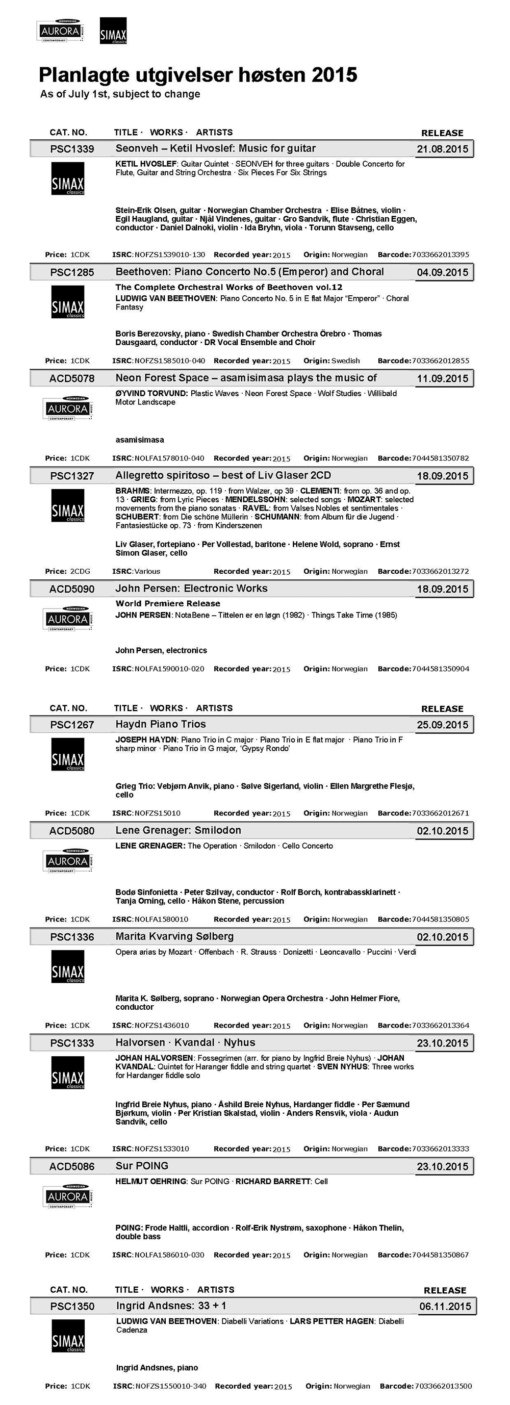 Resterende utgivelser i løpet av høsten kan der lese om i lanseringsteaseren fra Aurora / Simax nedenfor: