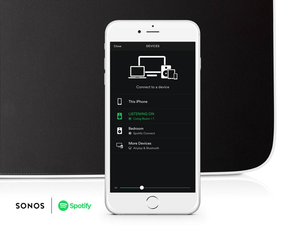 En nyhet er integrasjonen av Spotify Connect som gjør Sonos til det eneste multiromsystemet for hjemmet som kan styres direkte via Spotify-appen. Av Spotify sine egne funksjoner inkluderer dette blant annet avspillingskontroll og enkel tilgang til gruppering av rom. Og Spotify blir den første musikkstrømmetjenesten som gir brukerne av Spotify Premium full kontroll over musikken i hele hjemmet, uten å bruk Sonos-appen.