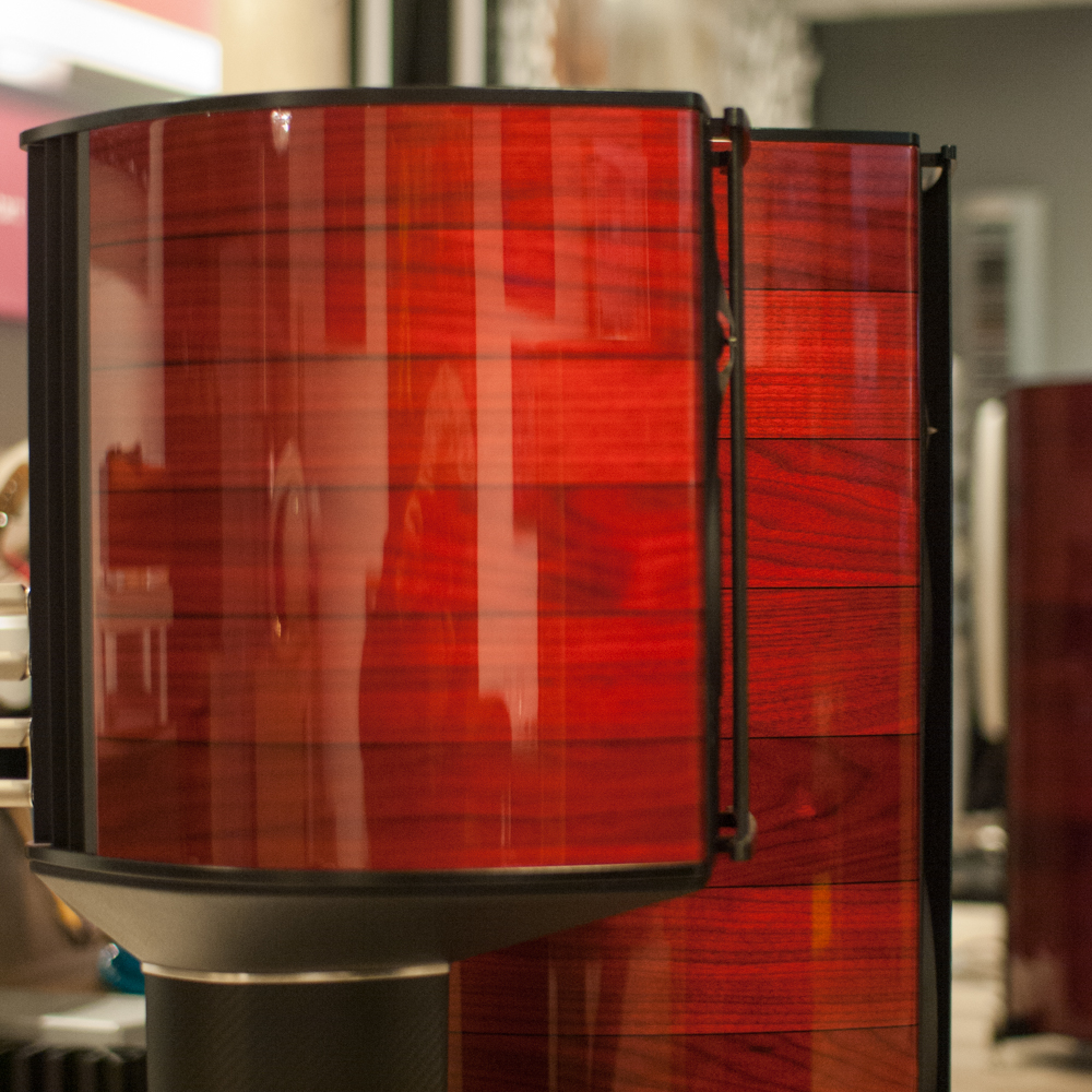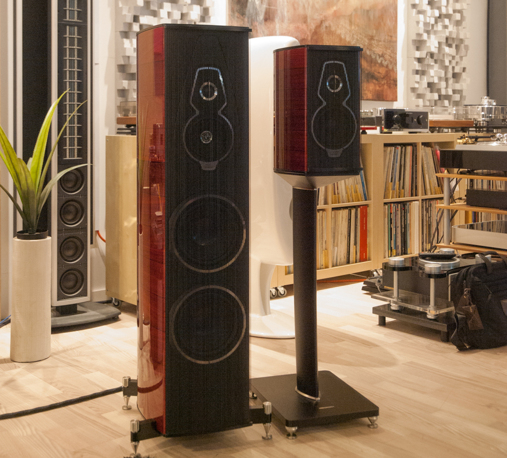 Hvis vi beveger oss en anelse over mot den delen av designet som har med lyd å gjøre, er det en påfallende endring at Sonus Faber nå har gått bort fra den bakoverlente silhuetten, og har frontbafler som er i lodd. Man kan fristes til å tenke at dette også har en symbolsk betydning, ved at det er et slags oppgjør med eldre tiders noe tilbakelent lydsignatur, til en mer moderne og transparent og sprudlende lydkarakteristikk. Eller som noen ville ha sagt – rødvinen er erstattet av Prosecco.