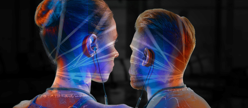 MA750 Wireless skiller seg fra den mindre modellen ved at sjarmøretappen på kabelen fra halsbåndet er utformet som en ørebøyle som bidrar til å holde pluggen på plass.
