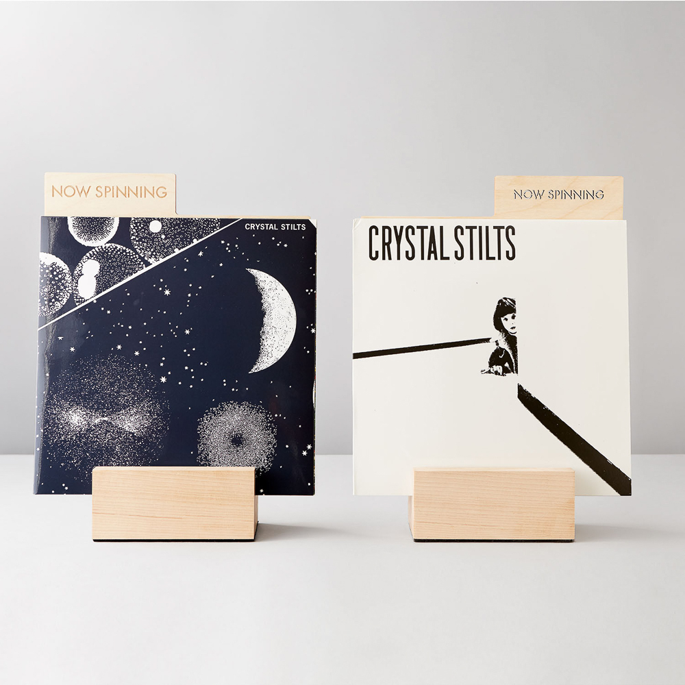 Nå har Koeppel Design lansert en nyskapning som de har kalt Now Spinning. Det er et stativ for å sette 1-3 LP-cover på, og finnes i to designvarianter - Stencil og Engraved. De koster begge 76 USD pr. stykk, og kan bestilles direkte fra produsenten i California.