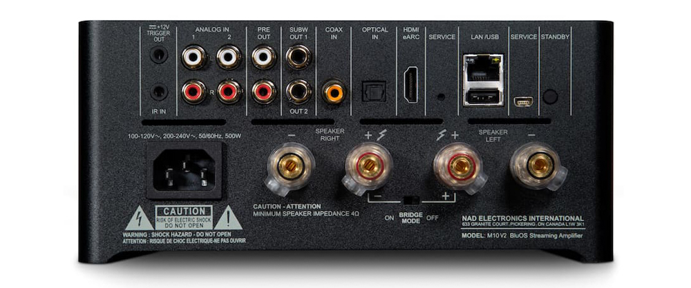 For mange kan V2 fortone seg som en ganske uvesentlig oppgradering, mens den for andre kan være en game changer. Det viktigste elementet i oppgraderingen er at M10 V2 begynner på en tilnærming som delvis visker ut skillet mellom moderat HighEnd strømmeforsterkere og AV-Receivere. NAD Masters M10 har hele tiden hatt en HDMI-inngang med ARC integrert, og utgjør sånn sett en av de naturlige konkurrentene til Linn Majik DSM som vi testet for kort tid siden. På spesifikasjonsiden er det litt gi- og ta sammenlignet med Majik DSM. Sistnevnte er en fullblods HDMI-maskin med fire innganger og en utgang, mens NADen har flere analoge innganger og et mer frapperende display. Og både NAD og Linn har vært helt i front når det gjelder å implementere HDMI-innganger i sine stereoprodukter.
