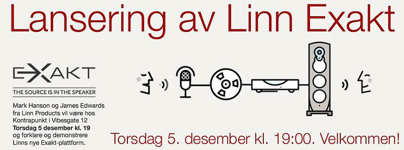 Torsdag 5. desember kommer altså to representanter fra Linn til Kontrapunkt, og de har med seg et komplett oppsett med Klimax 350, og vil demonstrere både analogt Klimax-oppsett, og et oppsett med Klimax Exakt. Det er Linn salgsjef Mark Hanson og Acdcount Manager James Edwards som kommer.