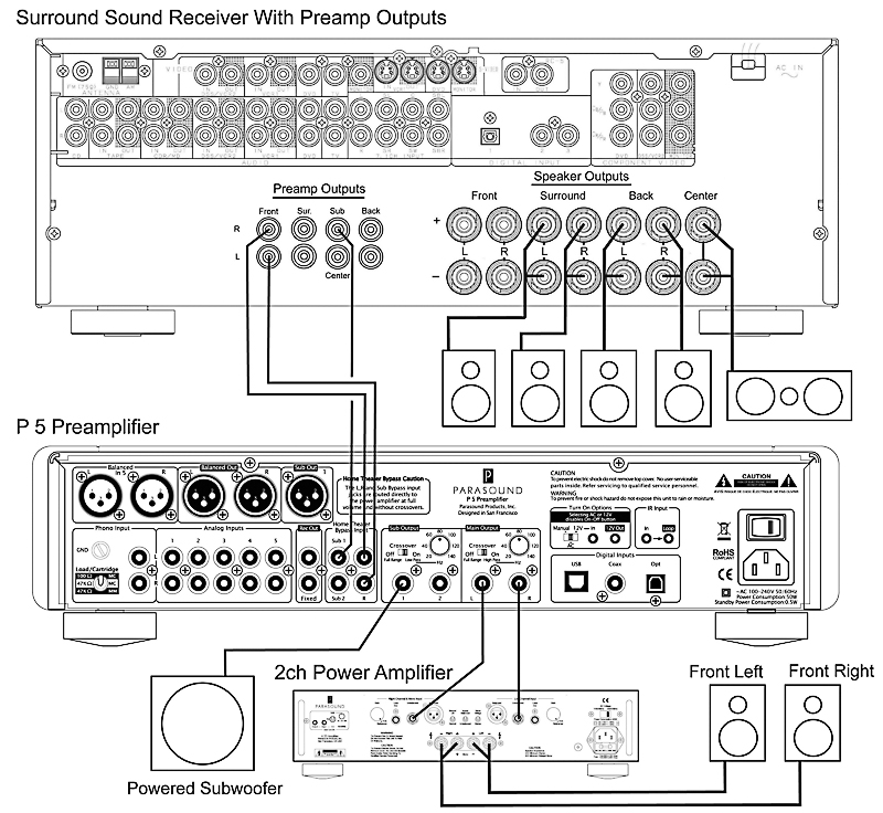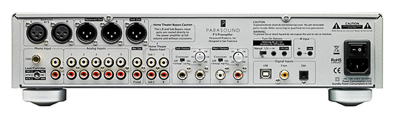 Parasound has chosen to emphasize that the P5 is a 2.1 preamp. It has two subwoofer outputs, and switchable, variable crossover frequency for both suwoofer and stereo outputs. This is a move we recognize from the preamplifier NewClassic Model 2100, which we tested a few years ago.
