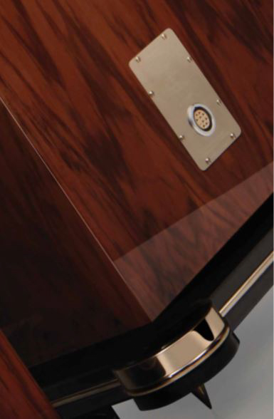 Høyttalerne har en spesiell høyttalerterminal for 6-kanals effektforsterker laget av LEMO, en produsent som har spesialisert seg på kontakter for HiFi, helse, luftfart og forsvar siden 1946.