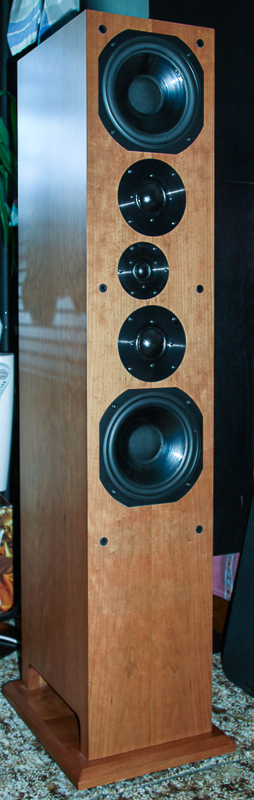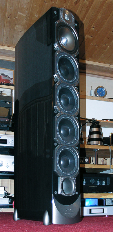 Vi snakker om en høytaler med ikke mindre enn 4stk 7" bass elementer pluss mellomtone og diskant, sett rett forfra uten front trekk ser den såpass annerledes ut kontra andre høytalere i samme prisklasse at man kan lett misforstå at dette er en dyr seriøs høytaler.