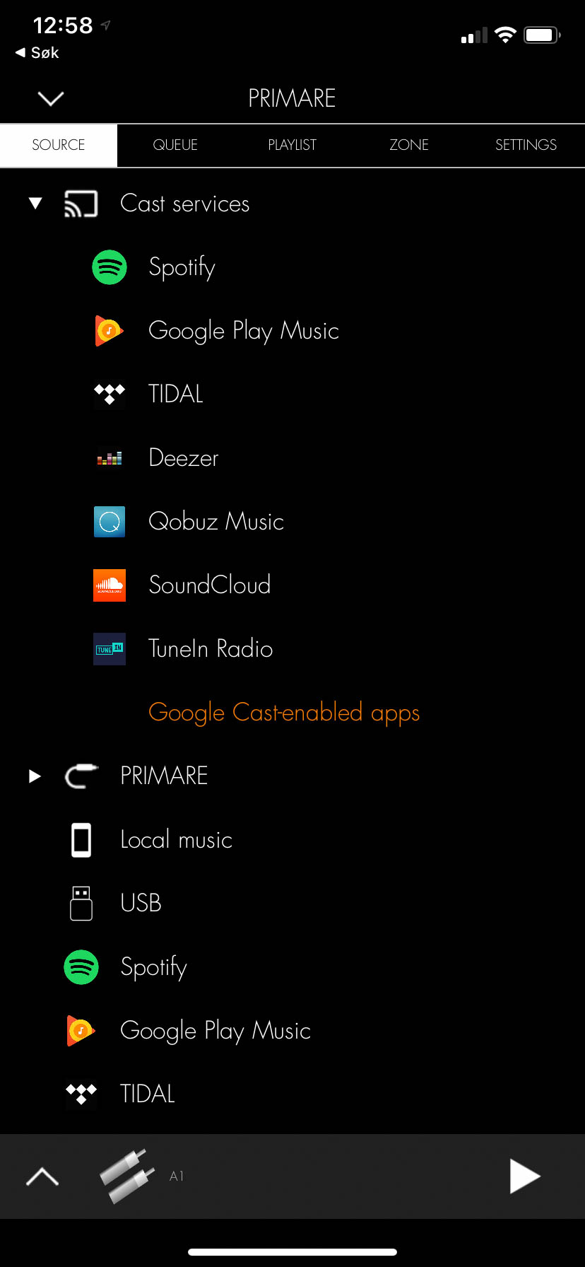 Den store fordelen med at Chromecast er den løsningen som formidler streamingen er at dette er en godt etablert standard. Man benytter hver strømmetjeneste sine egne apper for å velge- og å styre musikken, mens du velger å caste til Primare-enheten. Dette er en enkel og oversiktlig løsning, som fungerer godt. Vi opplever ofte at andre plattformer som må lage sin egen implementering av strømmetjenesten sin app bare lykkes delvis med funksjonaliteten. Med Primare sin løsning benytter du den appen du allerede er godt kjent med.