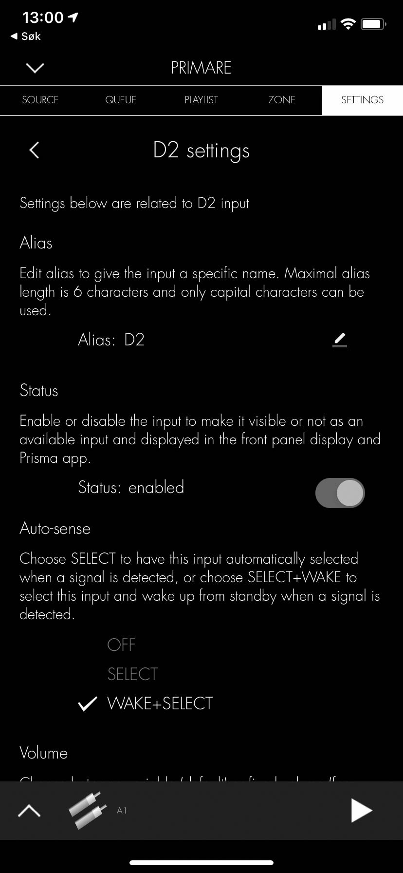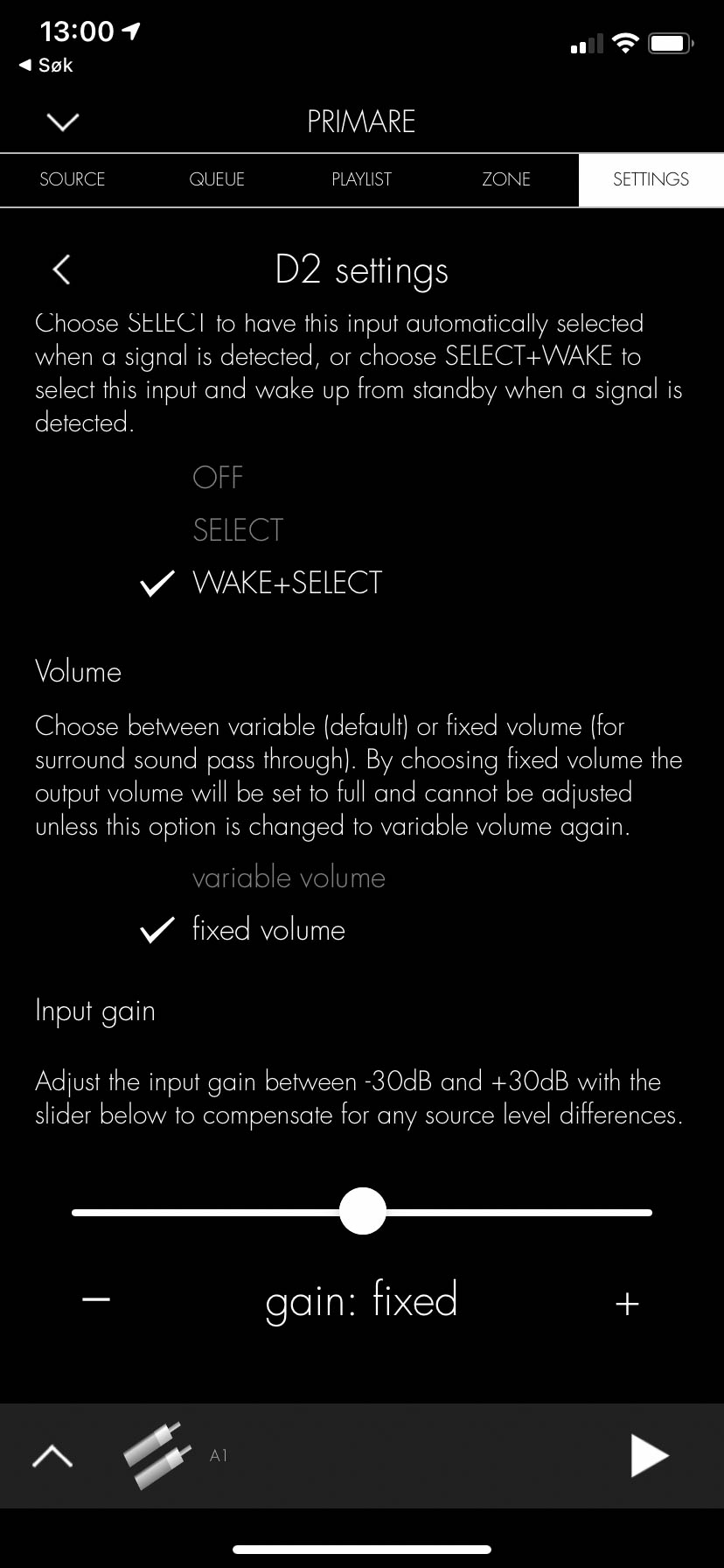 Og hvis du lurer på hva du skal med mer enn en inngang med fixed volume, er det en nyttig egenskap også hvis du skal koble til andre kilder som har innebygget volumkontroll. I testperioden koblet jeg blant annet til en Sonos Connect, der det er funksjonelt at det er Sonos-systemet som styrer volumet. Ikke minst hvis den er definert i et multiromsoppsett.