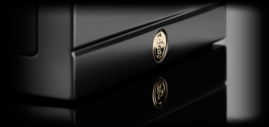 Kabinett er tilgjengelig i matt sort lakk, eller pianolakk.