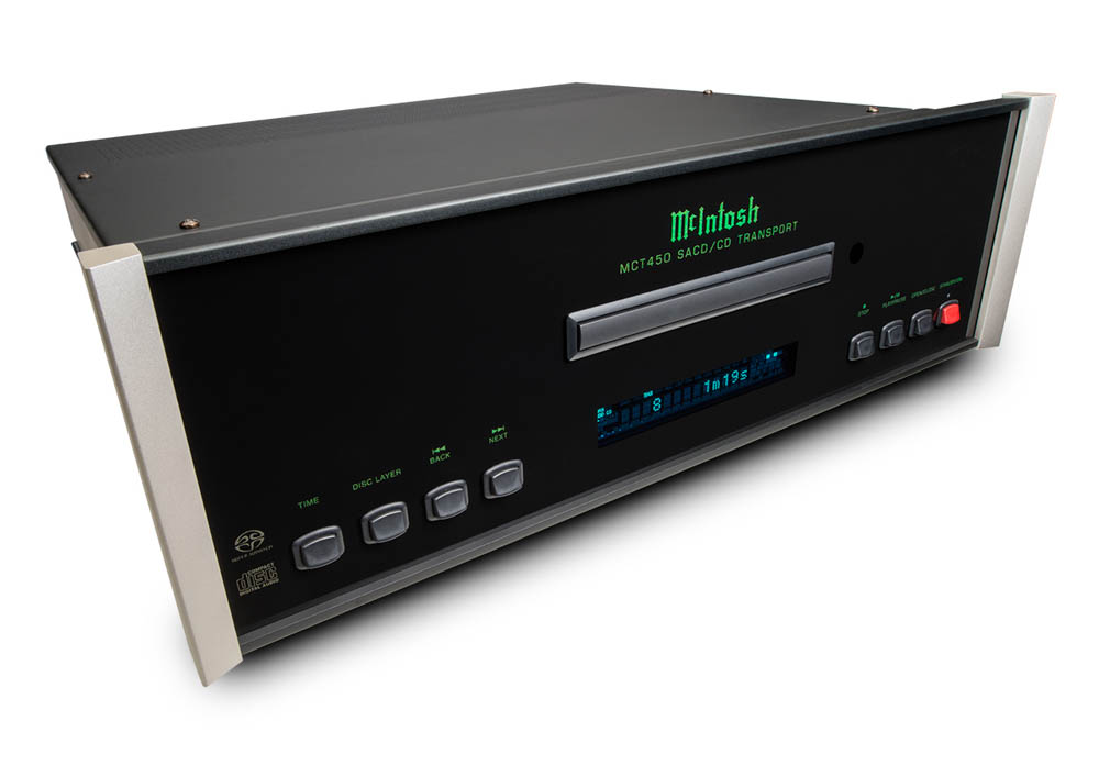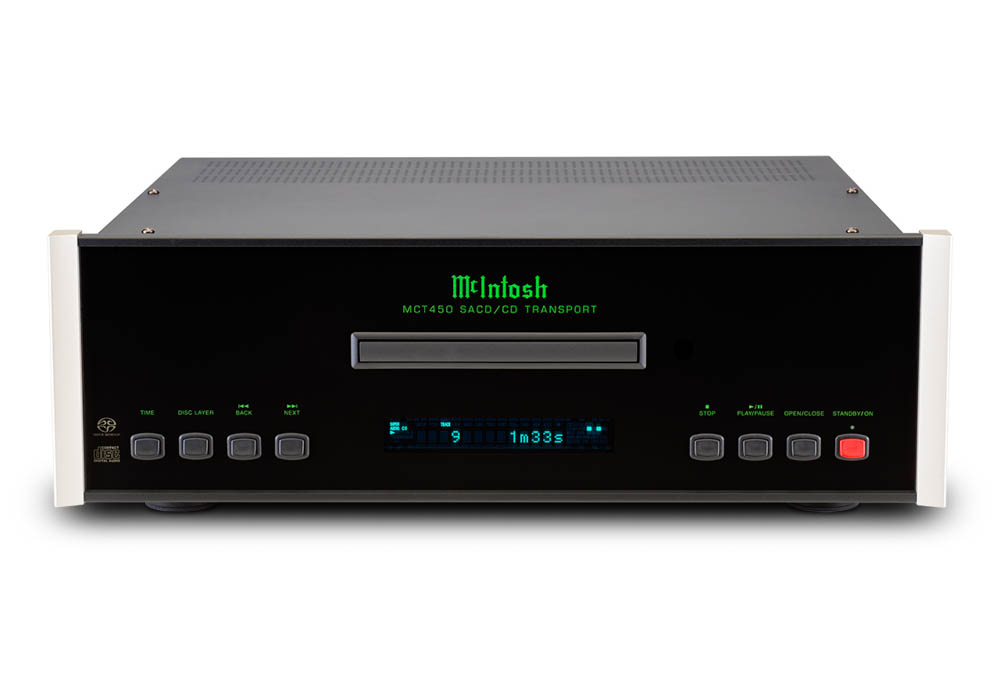 McIntosh MCT450 er en ren transport som kan avspille CD og SACD. For CDer kan du velge mellom optisk-, coax og XLR-utganger. Skal du derimot spille av SACDer er du avhengig av å benytte McIntosh sin spesielle variant av digital DIN-utgang. Denne forbindelsen kan for øvrig også benyttes til alle PCM-baserte formater som støttes av MCT450 (CD / CD-R /CD-RW med redbook, waw eller MP3.0). Men for å benytte DIN-overføring er du avhengig av å ha en McIntosh digitalprosessor i den andre enden, og du må benytte McIntosh sin spesielle DIN-kabel. Denne protokollen kan også overføre multikanals DSD fra SACD, da overført til en AV-prosessor med digital DIN-inngang.