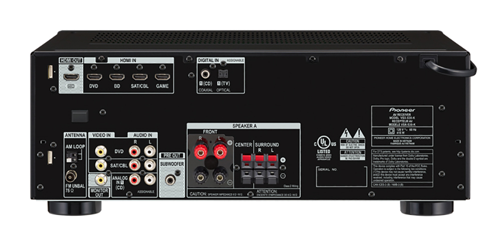 Til gjengjeld er CSX-530 4k-kompatibel - for passthrough, ikke skalering. Og oppgitt effekt er den samme som for storebror VSX-830, uten at vi dermed skal spekulere i om lyden er på samme nivå.