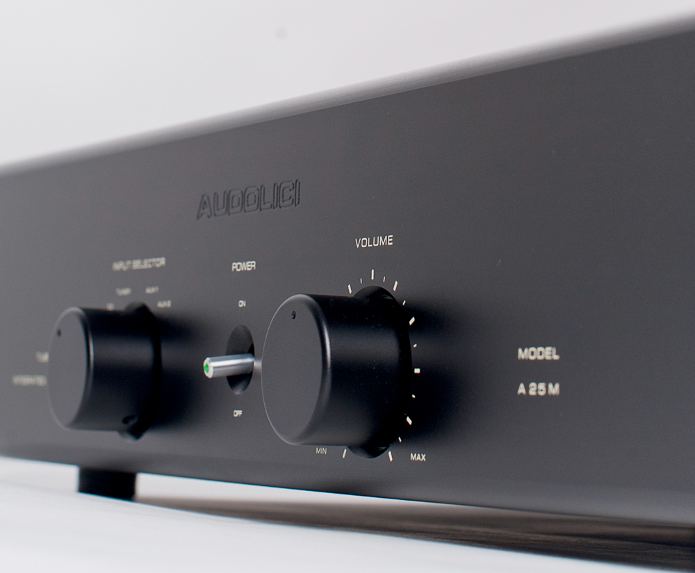 Det er eit godt utval av forsterkarar i Audolici si portefølgje, alt frå 300B-konstruksjonar til 6550 og EL34, oftast i form av integrerte forsterkarar. Den vi lytta til i Aveiro, var den nyaste, ein EL34-konstruksjon kalla A25 M. Denne leverte 2*25 Watt. Ikkje så veldig mykje, men tilstrekkjeleg til alt vi prøvde på i lytteøkta. Dessutan er Val snill med røra, og sikrar dei lang levetid når dei ikkje køyrast hardare enn dette.