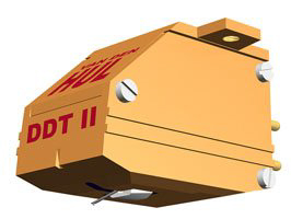 DDT er nok den billegaste pickup du kan få tak i med Van den Hul-slipt nål. Går du to tusenlappar opp i pris, får du modellen med same namn som min 80-tals MC 10, men det er neppe identisk med min gamle yndlingspickup. No er MC 10 oppgjeven til å ha sølvvikla spolar, og litt høgre output enn det eg minnest. Dessutan har eg høyrt rykte om at DDT er identisk med den opprinnelege MC 10, noko eg har vanskeleg for å tru. Og når det gjeld spesifikasjonar, er det i dag ingen skilnad på DDT II Special og MC 10 – til og med fargen er lik. Det er andre spennande alternativ i denne relativt skapelege prisklassen, og det er verd å merke seg MC ONE, som ikkje er anna enn ein finplukka og forfina MC 10. Så har vi MC 2, ein høgoutpututgåve som leverer 2,25 mV ut, slik at han kan brukast rett inn i MM-inngangar på forforsterkarar. Uansett har eg ein DDT klar til utprøving…