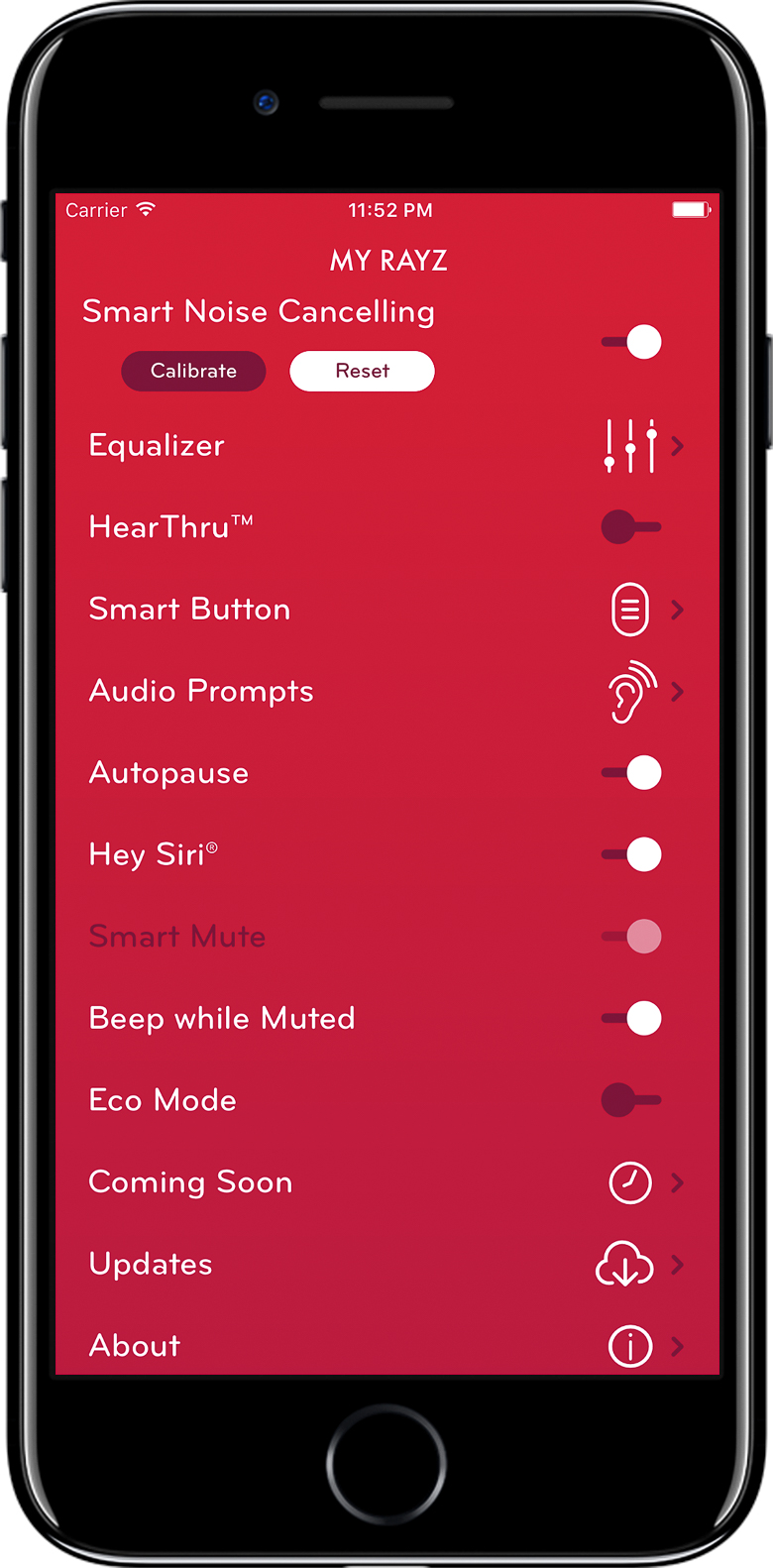 Siri er også på talefot med Rayz, og den er opplært til å gjenkjenne «hei Siri». Veldig praktisk er det også at Rayz ar en Hear-through mode, som gjør at du kan logge deg på omgivelsene ut å ta ut ørepluggene. Et fenomen vi er kjent med fra Parrot Zik er at den automatisk kommanderer iPhonen til å pause avspillingen i det du tar ut øretelefonene, mens det gjenopptar avspilling med en gang du setter de på igjen. Spesielt praktisk når du lytter til lydbok. Eller svigermor… - ville vært veldig ergerlig å gå glipp av et avsnitt.