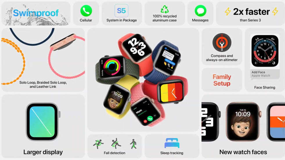Den som er sånn noenlunde kjent med Apple-begrepene forstår intuitivt hva Apple Watch SE dreier seg om. Det er tilsynelatende standard Apple Watch, men der de har beholdt den gamle S5-prosessoren, en prosessor som egentlig er rikelig tilstrekkelig muligens med unntak av evnen til å håndtere den nye oksygenovervåkingen, som uansett ikke er inklusiv i SE-versjonen. Det er heller ikke EKG, men der stopper forskjellene egentlig. Falldeteksjon er på plass også i SE.