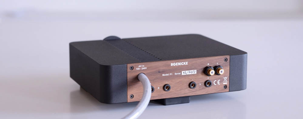 Sven Boenicke har stor tro på trematerialet sine akustiske egenskaper og har til og med valgt en bakplate på forsterkeren i massiv valnøtt! Resten av kabinettet kan fås i fargene sølv og sort.