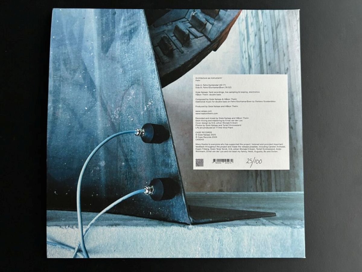 I tillegg til at musikken finnes på strømme-plattformer, er det utgitt 100 LPer som er nummerert. Og det eksemplaret jeg har sikret meg har nummer 85. Og dette er en utgivelse som absolutt bør eies på en LP, ikke minst gjelder det arkitekter med et åpent musikalsk sinn som er nysgjerrig på utforskende musikk som har unik arkitektur som «location».