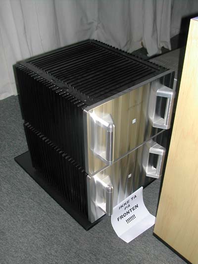 Eit anna godt og gammalt merke er Stax - mest kjend som produsent av elektrostatøyretelefonar, som er dei beste serieproduserte høyrelurar du kan få for pengar. Dyre om du ser på andre ting til å henge på hovudet, men om du vel utgåvene med eigne direktedrivne rørforsterkarar, får du ein detaljrikdom og ein nøytralitet INGEN andre lydformidlarar eg kjenner til kan klare (du bør lese omtalene våre her på http://www.audiophile.no) Ved sida av ser du det minste alternativet frå Avantgarde. Denne hornspesialisten har fått stort ry, men dette var mitt fyrste møte. Dynamiske kvalitetar eg ikkje har høyrt sidan eg fekk kose meg med Klipsch La Scala... Med baksida til ser du også ein større modell utstilt.