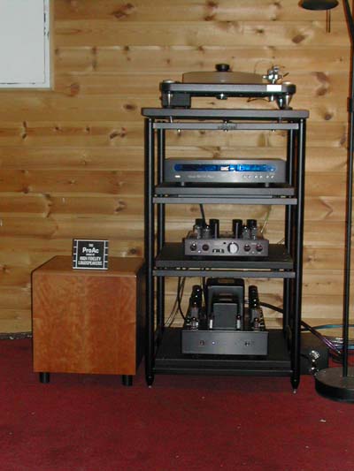 Nytt for meg var at ProAc no leverer ein subwoofer utanom surround-settet sitt. Det vart diverre ikkje tid til å lytte så mykje til denne, men eg har vanskeleg for å tru at ikkje denne også føyer seg pent inn i lista over kvalitetshøgtalarar. Endå har eg ikkje vore bort i ein tvilsam høgtalar frå ProAc...Her demonstrert saman med elektronikk frå Cary, og den (relativt) rimelege platespelaren Scout frå VPI.