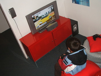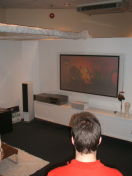 Lars Steen Rørvik frå Neby var til stades og demonstrerte Rotelforsterkarar over eit surroundanlegg frå Klipsch. Til dette var sittekomforten understøtta av tre spesielle lenestolar frå Techstyle Syntesis. For 9000 kr/stk kan design og den slags sikkert diskuterast. Det mest interessante med desse stolane var likevel den innebygde romperistaren. Denne kunne justerast med to potmeter på venstre side, slik at du kunne få ei sterkare oppleving av angrepet på Pearl Harbour og andre rystande filmopplevingar. Eg hadde i grunnen oppfatta dette som ein rå gimmick for folk som ikkje hadde plass eller råd til skikkeleg hifi, men der tok eg feil. Dette fungerte utmerka, iallfall så lenge det vart understøtta av eit komplett anlegg frå Klipsch med to hardføre subwooferar.
