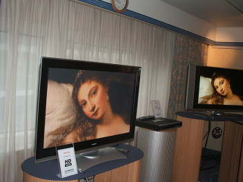 Hos Hitachi var den flotte plasmaskjermen 42PD7200 frå i fjor demonstrert. Denne kostar 32 000, men du får då ein verkeleg god plasmaskjerm. Nyaste projektor PJ-TX200 til like under 20 000 kr vart også synt fram, men kunne ikkje demonstrerast. Med ei enorm linse, stor oppløysing og kraftig lysstyrke er nok dette ein verdig arvtakar frå Hitachi sine tidlegare suksessmodellar. Elles har Hitachi også ulike variantar av DVD-miniDV-Harddisk-brennarar som nok vil interessere. For 7000 kr kan du t.d. skaffe deg ein DVDbrennar med 250 gb harddisk, nok til å lagre det meste av filmar.