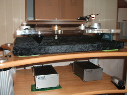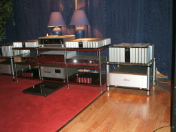 I dette oppsettet var det brukt fire hjørnebassar frå Audio Physics til 50 000 kr/stk, noko som absolutt kunne flytte nok luft. Geir Fredriksen demonstrerte, og etter ei stund kom også Geir Tømmervik og presenterte konstruksjonen. Lyden eg opplevde, var fyrst og framst open, og utruleg allsidig. Eg opplevde ein viss mistilpassing mellom subbar og hovudhøgtalarar, noko som også kan skuldast litt problem med romakustikken. Elles var det ganske fantastisk. Dynamikk som berre vaks heile vegen til topps, og frekvensområde og dynamikk som overgår det meste. I tillegg var perspektiveigenskapane mellom det beste eg har høyrt, slik du må kunne forvente når du har ein linjekjelde-konstruksjon. Geirane fortalde at sidan dei er lettdrivne og har enkel impedanse som er enkel å hanskast med for også rørforsterkarar, gjer at du godt kan bruke ein liten rørforsterkar med godt resultat, berre du tenkjer på korleis du koplar subwooferane (Avideco lagar også eigne subbar). Dette er nok den mest spennande høgtalarkonstruksjonen som nokon gong er produsert innanskjærs….