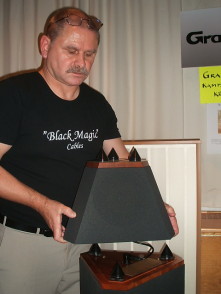 Per Bendixen er ein ihuga musikkelskar. Difor legg han enorm vekt på å få lyden så optimal som råd. Denne gongen nøydde han seg ikkje med å berre vise fram utstyr som hadde potensial, han hadde også arbeidd enormt for å faktisk gjere lyden så nær det perfekte som råd. Oppsettet var i hovudsak frå brasilianske Audiopax. Dette kjende eg att frå messa sist år, og hadde også fått utstyret demonstrert av Per i butikklokala. Timbre Control er eit trumfkort ingen andre har på handa, og her hadde Per verkeleg sauma anlegget så godt som råd. Med dei nye ”billeghøgtalarane” frå Audiopax til 100 000 kr gjekk ikkje bassen så djupt som på toppmodellane, men likevel djupt nok til at nesten alle musikalske behov vart stetta. Desse vart drivne av ein heilt ny stereo rørforsterkar på 2x30 watt, og ein forforsterkar modell 5, også frå Audiopax. Og i motsetnad til sist år, då Per hadde valt å bruke ein ganske ordinær CD-spelar, hadde han no med seg eit verkeleg råskinn frå Ed Meitner. Kablinga var nokre grove greier frå skotske Ecosse, og heile systemet vart understøtta med strum gjennom eit DeZorel nettfilter til 30 000 kr, som skulle tåle ”alt”. Og lyden overgjekk det meste av det du kan rekne med å oppleve på ei messe. Etter ganske kort tid, også før eg fekk spele min eigen CD, var det heilt klart at Norsk Lyd & Bilde hadde beste lyd på denne messa. Anlegget hadde heilt utruleg kontroll, og etter kvart som eg fekk spelt referansemusikken min, fann eg ut at det berre var to svake punkt i attgjevinga, den aller råaste jordskjelvbassen og dei heilt enorme fortissimopartia, som eigentleg ikkje er noko ein musikkelskar treng bry seg med. Per brukte også si gode musikksamling og innsikta i gode opptak for det dette var verd, og den som sette seg ned på stolane i rommet hans, hadde det definitivt ikkje kjedeleg. Lyden var fantastisk, særleg laurdag. Då hadde det skjedd eitkvart som verkeleg opna potensialet. Men kanskje ikkje all denne godlyden skuldast Per og produkta hans åleine? Stabilitet for anlegget har i dag fått større fokus, noko eit lite firma frå Ålesund har basert seg på. Svein Oddvar Osen frå Audio Stone har starta opp produksjon av nokre svært imponerande produkt. Desse er laga i metall og granitt, og dei har fått god omtale i lydlege samanhengar, sist frå ei messe i Milano der Audio Stone og Norsk Lyd & Bilde deltok. Desse flotte produkta skal vi på www.audiophile.no utforske nærare……