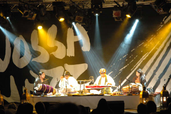 Prøv å uttala dette litt utpå kvelden! Men opninga vart etterfylgt av denne fargerike gjengen (Debashish er leiaren på indisk slidegitar), og det er utruleg herleg å høyra litt ikkje-europeisk musikk innimellom. Debashish snakka om "unconditional love" til du nesten fekk nok, men bodskapen var enkel: Du skal ha kjærleik til alle og alt du gjer, og det er tydeleg at det hjelper. Gitarspelet hans er truleg noko av det beste som kan oppdrivast, og saman med tett komp på diverse trommer og perkusjon var dette ein fest både for øyre og auge. Dette var opningskonserten, ikkje å forveksle med tingingsverket som gjekk laurdag (Solveig Slettahjell).