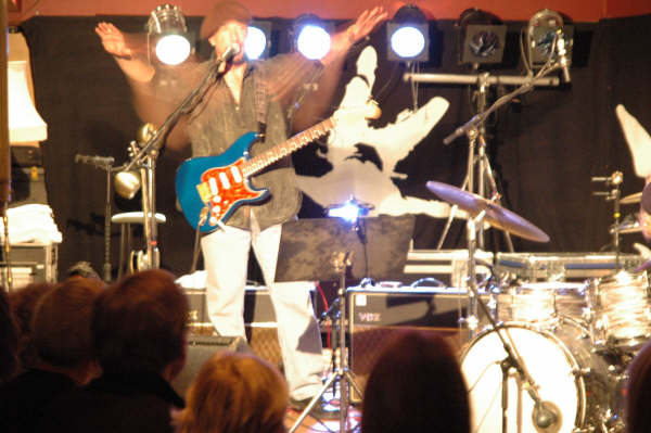 USA, og som gifta seg med ei vossajente. Etter fleire år med flytting og utprøving –derimellom USA att – er han no attende på Voss, og denne gongen trur eg han vert verande. Han heldt ein kjenslelada konsert i Osasalen etter han kom att for ikkje lenge sidan, og fylgte fint opp i dag med Øystein Lydvo på bass og Kåre Opheim på trommer. Ein gild konsert. Mike er ein gitarvirtuos som beherskar tilsynelatande alle sjangrar, og blandar det meste, men likar jazzen aller best.