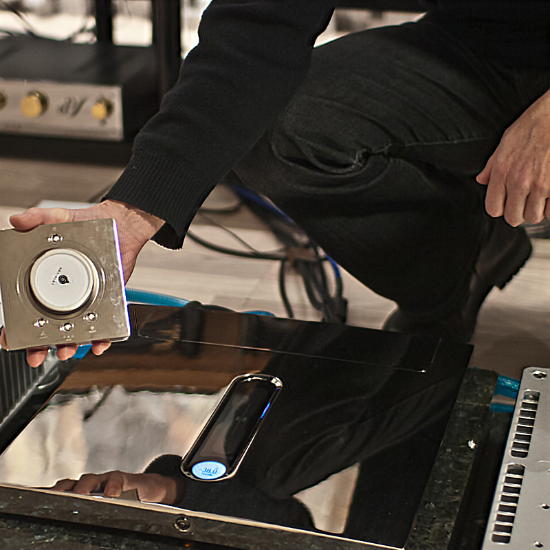 I del 2 får vi en fordypning av et oppsett der Renaissance Audio sine egenproduserte, umiskjennelig blå høyttalerkabler deltar med biwiring, der Roald har håndplukket kabler for respektiv bass, og øvrig frekvensområde. Kablene er bindeledd mellom forsterker, og et høyttalersett fra Von Sweikert. Videre har oppsettet en forsterker fra franske Devialet, som har både analoge og digtale innganger. Roald fremhever spesielt de rike konfigureringsmulighetene, der du bl.a. kan velge mellom ulike Riaa-kurver. Vi ble innledningsvis presentert for en lyd-demo med bokstavelig talt sjokkartet dynamikk med dette oppsettet.