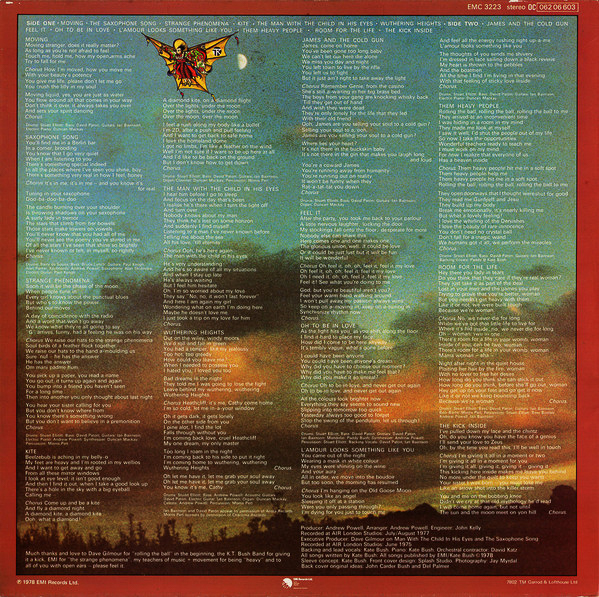 Det starter ganske sterkt i åpningslåten, men allerede da hadde Kate Bush tilstrekkelig fingerspitzgefuhl til ikke å gå ut helt på topp. Eller det var kanskje produsenten? Uansett, Moving er en flott låt, som slutter med en karakteristisk hval-sang, som var litt i skuddet på den tiden. Moving glir nesten organisk over i The Saxophone Song, som en slags tvillinglåt til åpningslåten.