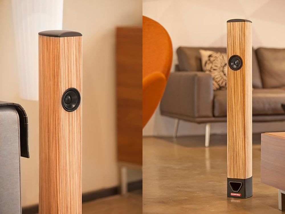 Det er ikke bare konstruksjonskonseptet som skiller Kvart & Bølge fra mengden. Også når det kommer til design er de annerledes. Eller - egentlig er det kunden selv som har siste ord i designet av disse slanke høyttalerne. For i tillegg til et par standard varianter med overlfate i Wenge og Zebra, kan du for samme pris bestille et høyttalerpar med akkurat den overflaten du selv designer. Eller du kan velge blant en håndfull ferdigdekorerte høyttalere fra kunstnere.