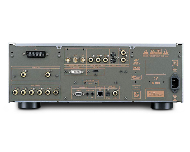 Bakplaten rommer et rikholdig utvalg av tilkoblinger for både audio. Egene stereoutganer for high-end lyd i stereo fra CD, SACD og DVD-A. Hele fire (fem) ulike digitale lydutganger med SP-DIF, TOSLINK, Denon-Link og 2x IEEE1394 (og HDMI) som mulighet for tilkobling av digital lyd. Videotilkoblingene er om mulig ennå mer omfattende med SCART, DVI, HDMI, 2X Video, 2X S-VIDEO og 2X Component. Her bør det være mulighet til å få tilkoblet selv det mest svære video-display!
