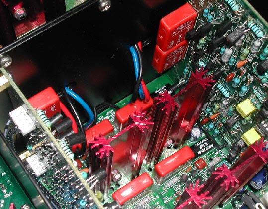 INNI: Med ærefrykt tok eg lokket av dette store beistet. Og forsterkaren var like flott inni som utanpå. Nydeleg handverk. Etter det eg kunne sjå, var også komponentane av god kvalitet. Alt såg også svært servicevenleg ut (bortsett frå mengda av komponentar, då - her var printplater i fleire plan…)