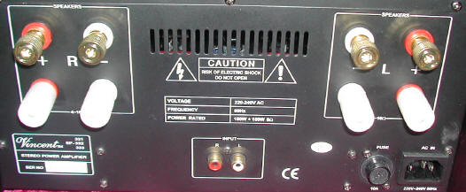 Når SP 331 pakkast ut, får du inntrykk av soliditet. Dette er ein tung sak, beistet veg faktisk 19 kg, noko som gjev ein rimeleg kilopris. Dette er for det meste mykje kostbare deler, mellom anna ei solid straumforsyning og to solide striper toshiba utgangstransistorar. Fronten har klassisk design, med av/på-knapp og to kraftige, skråstilte berehandtak. Baksida har doble høgtalarterminalar av svært god kvalitet, og to vanlege inngangar. SP 331 er ikkje balansert, noko som slett ikkje kan forventast til den prisen. Vincent leverer også ein matchande preamp, SA 31 som er ein rein rørkonstruksjon. Denne har ikkje vore på lager på ei stund, men eg har fått lovnad på å prøve ut også denne når han kjem inn att over sommarferien. Med ein pris på knapt 4000 kr, må dette vere den rimelegaste rørbaserte forforsterkaren på marknaden. SP 331 gjev altså inntrykk av å vere ein ganske minimalistisk sak, og det er klart at produksjonskostnadane må skvisast for å kunne levere eit produkt som dette, ein hybridforsterkar på 2x150 W til under 7000 kr. Her er ingen ekstra fasilitetar - noko kjøparen skal vere glad for, då det måtte gå ut over kvaliteten. Dei to røra på inngangen er 6N16.