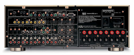 SR7300 har i likhet med Yamaha DSP-AZ2 valgt å begrense seg til kun en effektforsterker for bakre surroundkanaler (S.B.). Dette fører nok til en obligatorisk mangellapp. Men når det er sagt, kan jeg ikke fri meg fra tanken om at det kan være et fornuftig valg, tatt i betraktning at kampen med prislappen trolig er beinhard. Både multikanals-inngang og pre-out er utført som 7.1, og dermed er oppgraderingsmuligheten intakt. Og dessuten er det vitterlig mulig å koble 2 sett høyttalere til den ene terminalen, siden signalet for de 2 S.B.-høyttalerne uansett er mono. Pass bare på at disse høyttalerne ikke har for lav impedans.
