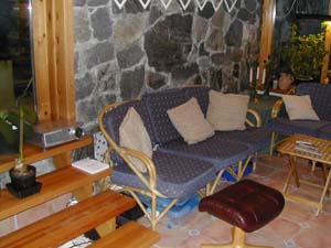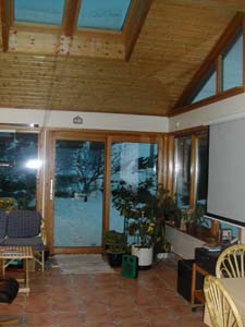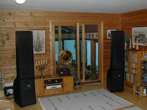 Gjennom iherdig innsats i alle år, har eg greidd å unngå TV og hifianlegg i same rom. Etter mitt syn er TV noko av det mest øydeleggjande du kan ha i eit rom der du vil spele musikk. Den einaste fornuftige plasseringa er midt mellom høgtalarane, og dette fører automatisk til dårleg romoppleving. TV-en verkar også inn på lyden på andre måtar, men det aller verste er at musikkanlegget vert okkupert av TV-sjåarane. Ein familie på 5 har eit betydeleg TV-behov, og det ville ikkje vore mykje tid att til musikk om eg måtte vente med dette til etter barneTV og sportsendingar. Fyrste føresetnad for heimekino må altså vere at denne skal plasserast utanfor daglegstova (lytterom nr 1 her i huset - ommøblering av dette er utenkjeleg, sjå foto) TV er alt plassert i eit eige rom (lytterom nr 4), men dette er asymmetrisk, langt og smalt, og for lite til at meir enn 3 - 4 personar kan sjå TV samstundes, dessutan eignar det seg dårleg til lydformål. Det vert difor glasverandaen (lytterom nr 2) som må brukast. Dette rommet tener mange funksjonar i huset, og eit anlegg må ikkje vere i vegen for hobbyar og sosiale aktivitetar som dartspel, måltid og bursdagsfeiringar. Rommet er ca 6x4meter og stort nok, men langt frå ideelt. Som glasveranda består tre av veggane stort sett av vindauge. Her er mykje blomstrar både om sommaren og i vinteropplag, og det er ein god del temperatursvingingar. Akustisk sett er rommet likevel forbausande bra, og det er forbausande enkelt å få til god lyd, kanskje på grunn av den store takhøgda. Dette gjer at eg er optimistisk med tanke på å få bra lyd i rommet, sjølv om anlegget må fjernast frå golvet og hengast på veggane.