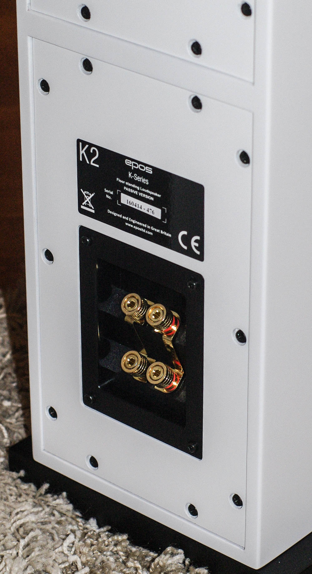 K2 er ein golvståande høgtalar, som skil seg frå dei tidlegare Epos-generasjonane med moderne utsjånad og kvit, lettstelt (nei, ikkje pianolakk, matt der fingeravtrykk ikkje synes) og solid overflate, fint avrunda kantar rundt både bassport og høgtalarelement. Det finnest frontstoff, men det er ekstrautstyr. Høgtalaren er utstyrt med ein domediskant av ukjent opphav, og er relativt kraftig rettstrålande til domar å vere, som har både pluss og minus. Ulempa er at sweetspot vert relativt trongt, iallfall om du sit tett på høgtalarane. Personleg tykkjer eg det er viktigare at dei dermed vert ganske lette å plassere, utan å måtte bry seg så mykje med omgjevnadane. Ved utprøving av plassering synte dei seg ganske rett å vere rimeleg lette å sette både tett på bakvegg og sidevegg, om ein berre gav dei ørlite innpeik mot lytteposisjon. Eg enda etter kvart opp med å sitte knappe 3 meterunna, medan høgtalarane stod om lag ein meter frå både bak- og sidevegg. Men i starten sat eg vesentleg nærare, med høgtalarane peikande lett innover, mot eit punkt langt bak meg. Då fekk eg utmerka pinpoint-kvalitetar med det som høyrer til i referanseanlegget mitt. Dette er nok overkill i høve kva ein K2-eigar vil aspirere, men som vi skal høyre, kom desse høgtalarane det forbausande godt ut av slikt selskap.