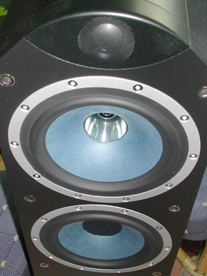 Dette er ein diskret, men elegant sak som med sine mange alternativ i tresortar skulle vere lett å få til å passe inn i dei fleste miljø. Paret eg prøvde var svartbeisa, og litt meir dystre i framtoningen enn eg ville ynskje meg, men dette er ein smakssak. Høgtalaren har to like store ”bass”-element, der det øvste har innebygd senterplassert diskantelement. Eg er usikker på om det nedste er eit slaveelement, iallfall fungerar elementa utmerka. Konstruksjonen er bassrefleks, med ein liten bassport på baksida, nede på høgtalarane. Dei er leverte med skumgummiproppar i portane, og du må vurdere i kva grad du ynskjer å fjerne desse. Heilt på toppen, i eit avrunda, augeforma kabinett, finn vi ein ”superdiskant” (WIDEBAND™). Denne skal syte for stor oppløysingsevne og ekstra luft i toppoktavane, og strekkjer seg heilt til over 50 kHz. Plasseringa av denne er ikkje tilfeldig, og er nok svært viktig for perspektiveigenskapane til høgtalaren. Meir om dette seinare. Høgtalarane er litt over 1 meter høge, og har ei grunnflate på berre 20 x 25 cm, om du ikkje brukar dei medfylgjande beina. Dei stel altså svært lite areal, sjølv om det vert opplyst frå produsenten at dei skal vere minst 50 cm frå bakvegg, og 1 m frå sidevegg, og ha ein innbyrdes avstand på mellom 1,5 og 4,5 meter. Eg prøvde ulike plasseringar i ulike rom, og fann at dei gjerne kunne brukast litt tettare på veggane i nokre samanhengar, men som utgangspunkt er det greitt å ha god avstand spesielt til sideveggane.