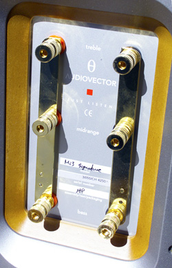 Diskanten skal ifølge Audiovector være konstruert for optimal oppførsel i tidsdomenet og er åpen på baksiden. Bakpå høyttaleren (se bildet t.h.) er det en gitterdekket åpning rett bak elementet som er konstruert slik at diskant mellom 3 og 8 kHz skal slippe ut bakpå høyttaleren. Når man har stilt opp høyttaleren skal skruene for diskantelementet (bare de ytterste!) løsnes slik at man fjerner den mekaniske koblingen mellom kabinettet og diskanten. Skruene skal bare holde elementet på plass og det ligger en tykk gummiring mellom elementet og kabinettet. Dette er i prinsippet det samme som B&W gjør på sine toppmodeller når mellomtone og diskant flyter på en gelefylt pute isolert fra selve kabinettet - om enn i en vesentlig mindre spektakulær form.