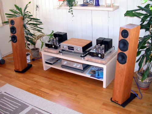 I forhold til mine egne Magnepan-høyttalere med DIY-føtter, ser de slanke, tyske høyttalerne nærmest puslete ut. Det trenger ikke nødvendigvis være en ulempe. I hvert fall ikke hvis din eventuelle livsledsager ikke er førstemann i køen når hifimessene åpner dørene.
