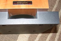 Audio Physic Spark III er en 2 1/2-veis bassreflekshøyttaler, hvor refleksporten vender ned i basen og ut til verden via en rektangulær åpning i fronten av basen.