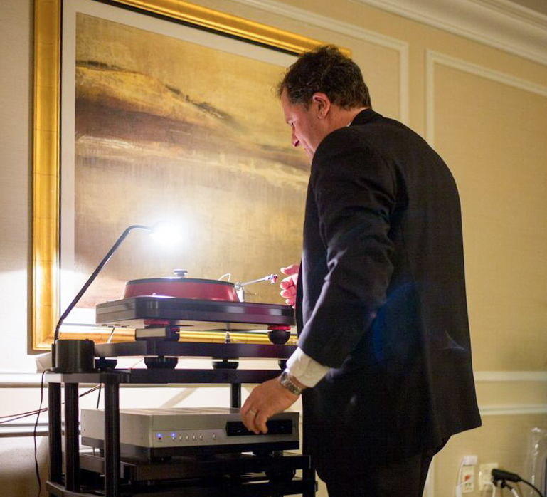 Luke Manley frå VTL styrer armen med ein Lyra Etna innover ein Spiral Groove Revolution platespelar. Forforsterkar VTL, naturlegvis.