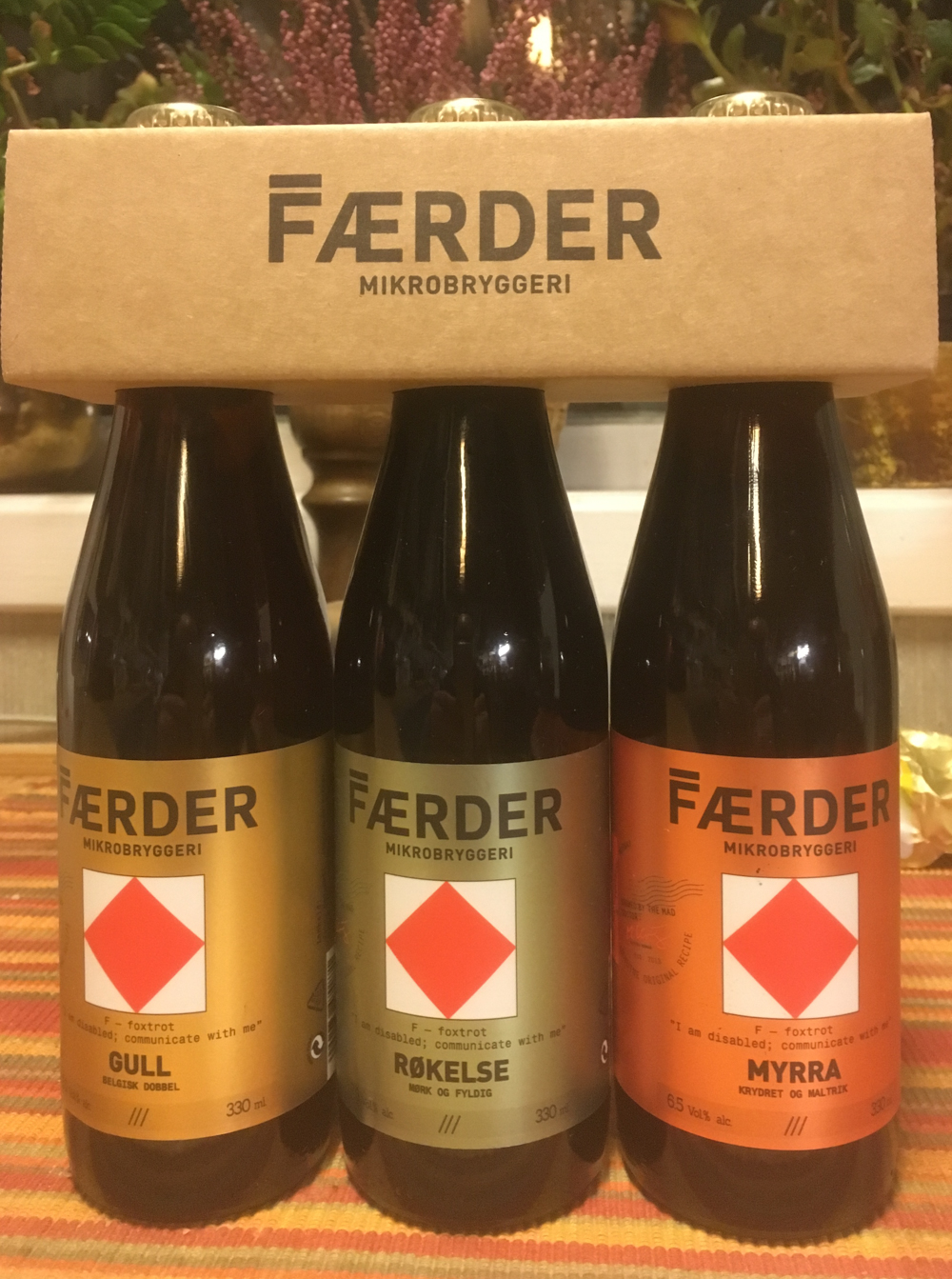 Færder mikrobryggeri held til i Tønsberg, og i jolagåva fekk eg ein trepakning (sjå bilete) kjøpt på Polet, kalla Gull, Røkelse og Myrra. Heilt fantastiske øl alle tre. Røykjelse smakte stout/porter, Myrra som ein jolaøl, og Gull drakk eg nokre dagar i førevegen og hugsar ingenting av. Men eg hugsar at han smakte. Spør gjerne etter Færder neste gong du er på polet.